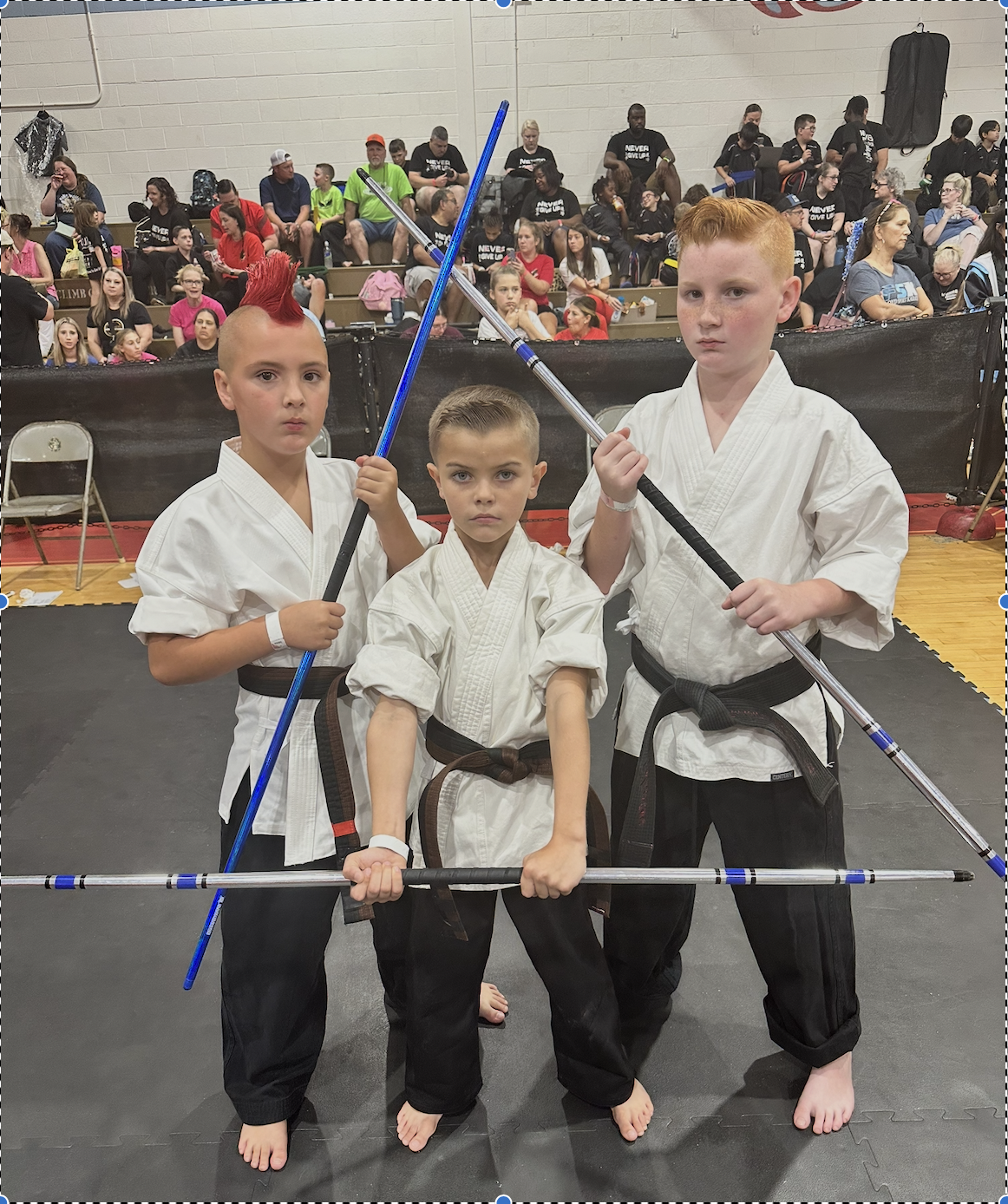 Our sport martial arts training takes place on Fridays. We offer Forms, Bo Staff, and Point Sparring classes to teach our students how to compete at tournaments. The other extra cost of participating in those classes are purchasing a bo staff and a set of gear which includes a helmet with face shield, hand pads, feet pads, mouthpiece, chest pad, and groin protector for males. Our forms class teaches traditional and creative style forms. These could be used to perform at competition, talent shows, or as a part of the Demo Team. The competition team travels and competes on a circuit called The Competitors Tour (TCT). Any of our students may participate at these tournaments. Coach Josh can provide all the information and details to get you child, or you started with tournaments.